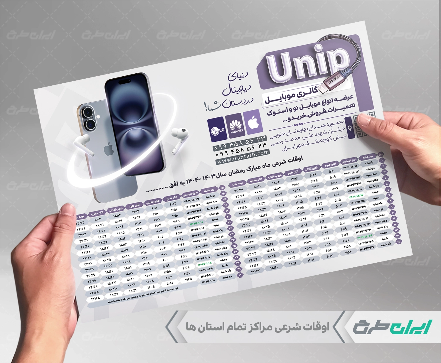 طرح جدول اوقات شرعی ماه رمضان 1403 موبایل فروشی