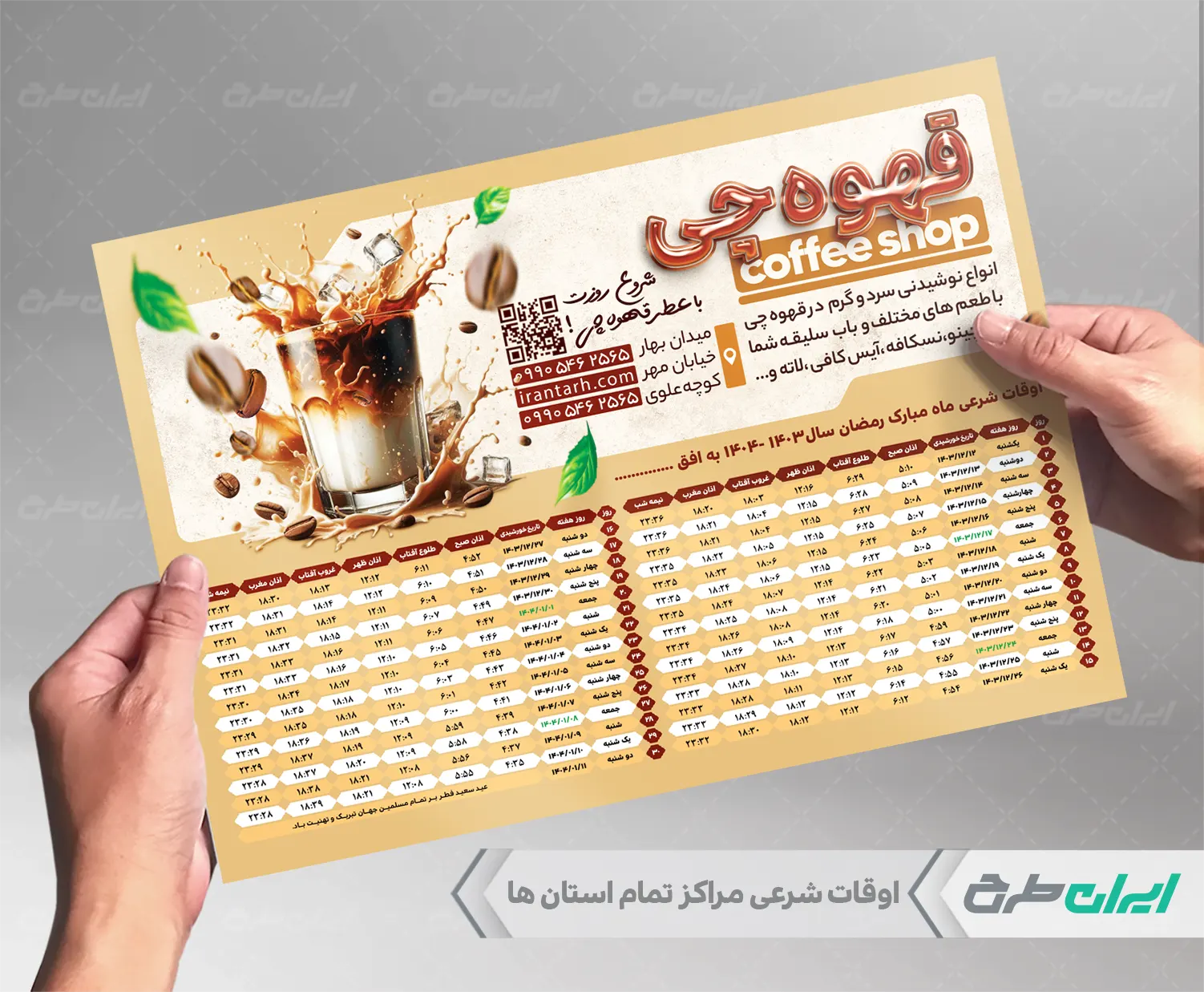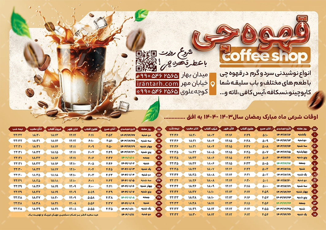 طرح جدول اوقات شرعی ماه رمضان 1403 کافه قهوه