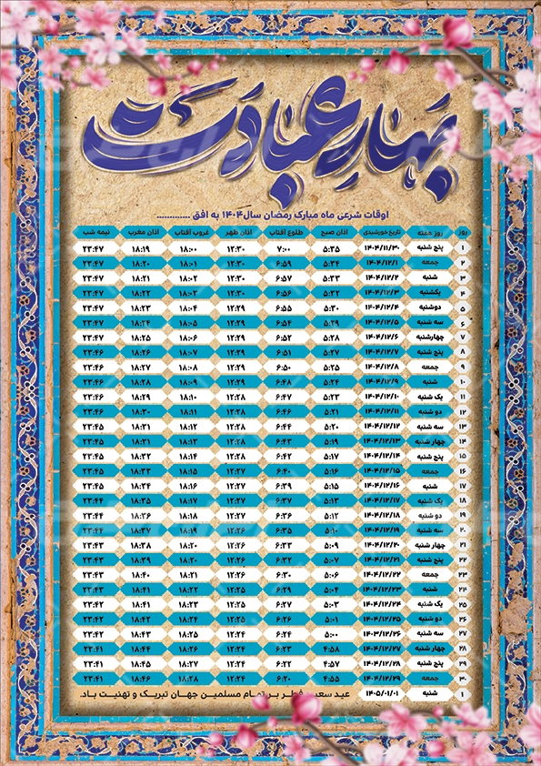 اوقات شرعی لایه باز , اوقات شرعی رمضان 1404 , اوقات شرعی ماه رمضان , اوقات شرعی ماه رمضان 1404 , طرح اوقات شرعی 1404 , دانلود طرح لایه باز اوقات شرعی , ماه رمضان , طرح اوقات شرعی رمضان 1404 , جدول اوقات شرعی , جشن رمضان , طرح لایه باز اوقات شرعی , اوقات شرعی رمضان 1404 , اوقات شرعی , 1404 , اوقات شرعی ماه رمضان 1404 , ماه مبارک رمضان , تایپوگرافی بهار عبادت ,