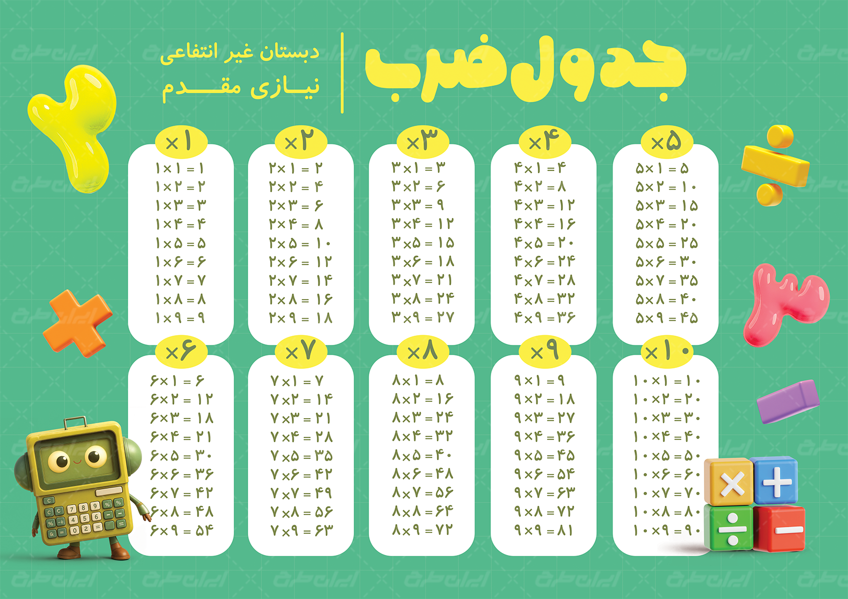 طرح جدول ضرب، وکتور، عکس باکیفیت، لیبل و شیپ های کاربردی می باشد.