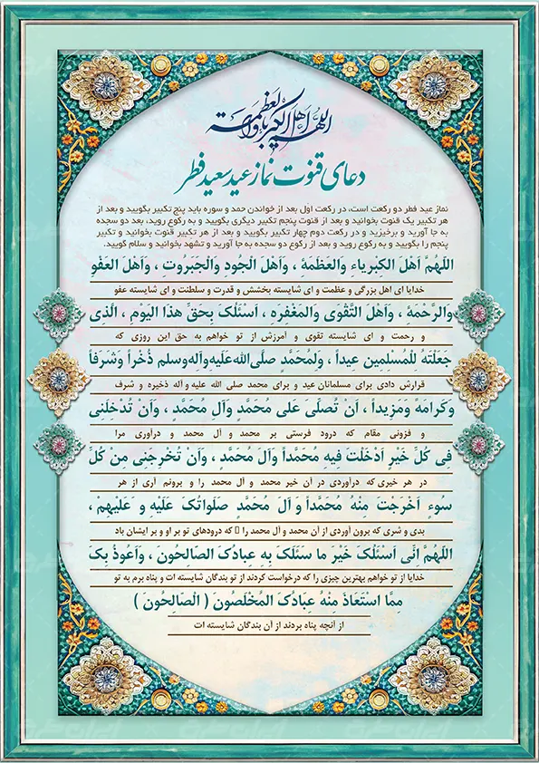 تدهیب و متن دعای قنوت نماز عید فطر می باشد که توسط تیم ایران طرح طراحی شده است.