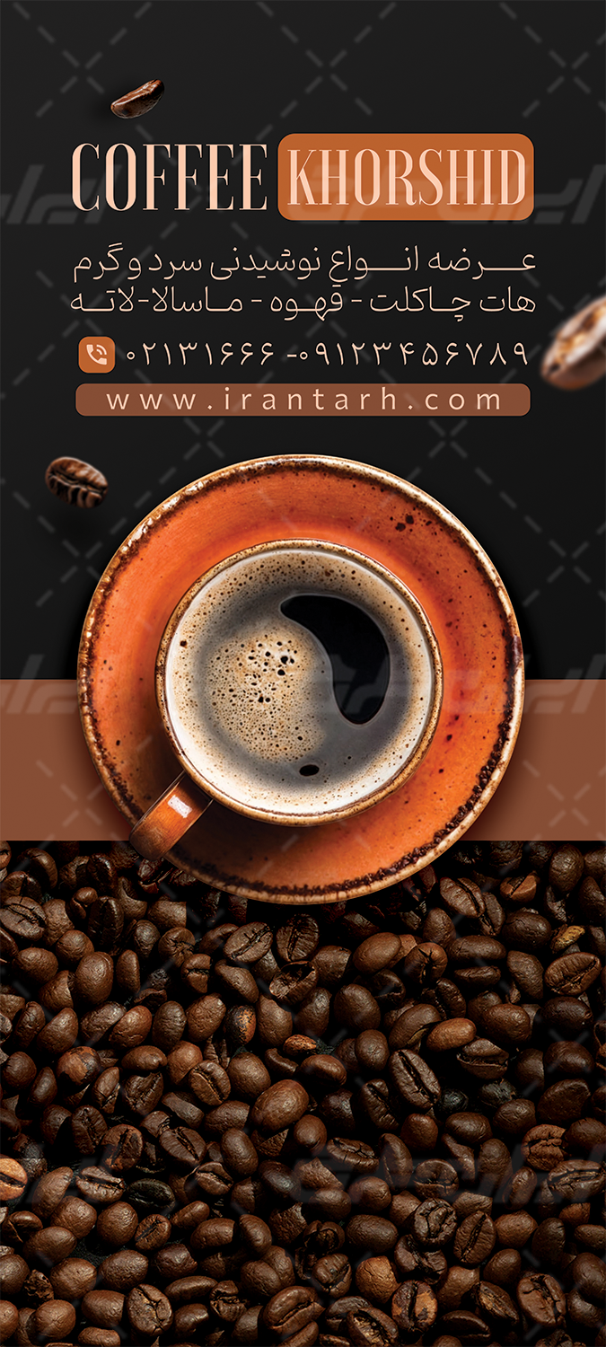 مشخصات فنی طرح لایه باز بنر قهوه سرا