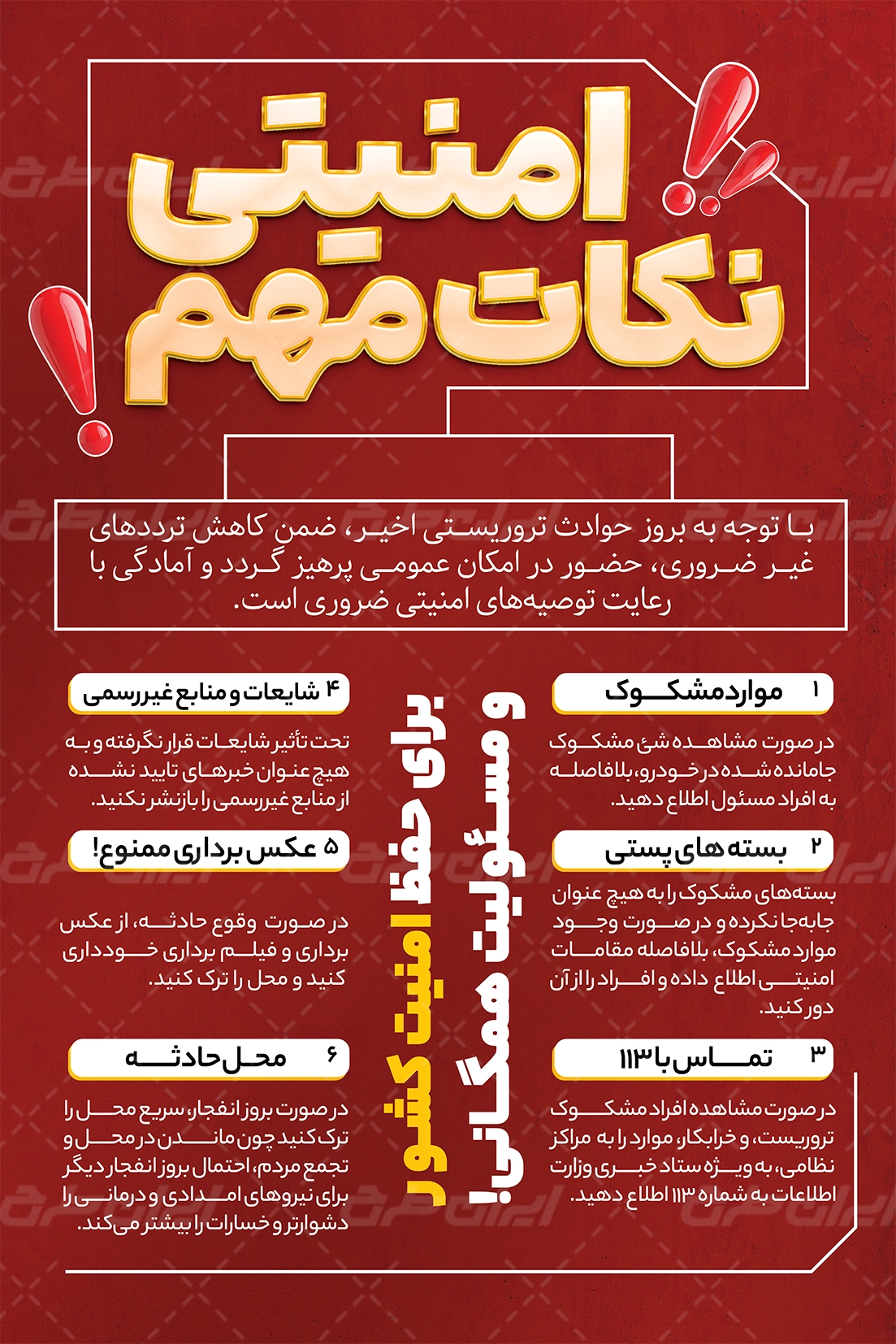 طرح بنر نکات امنیتی توسط تیم ایران طرح طراحی و در دسترس کاربران سایت قرار گرفته است.