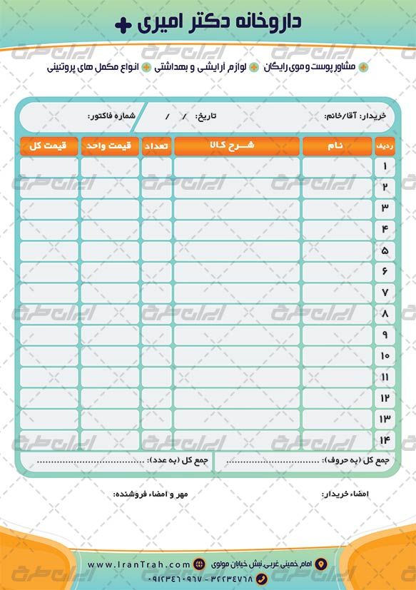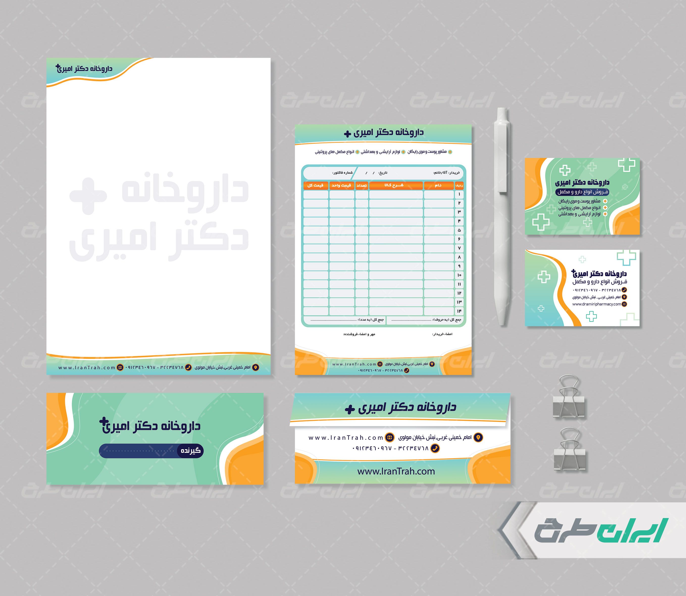 طرح ست اداری داروخانه جهت تبلیغات و بازاریابی این دسته از مشاغل توسط تیم ایران طرح طراحی شده است.