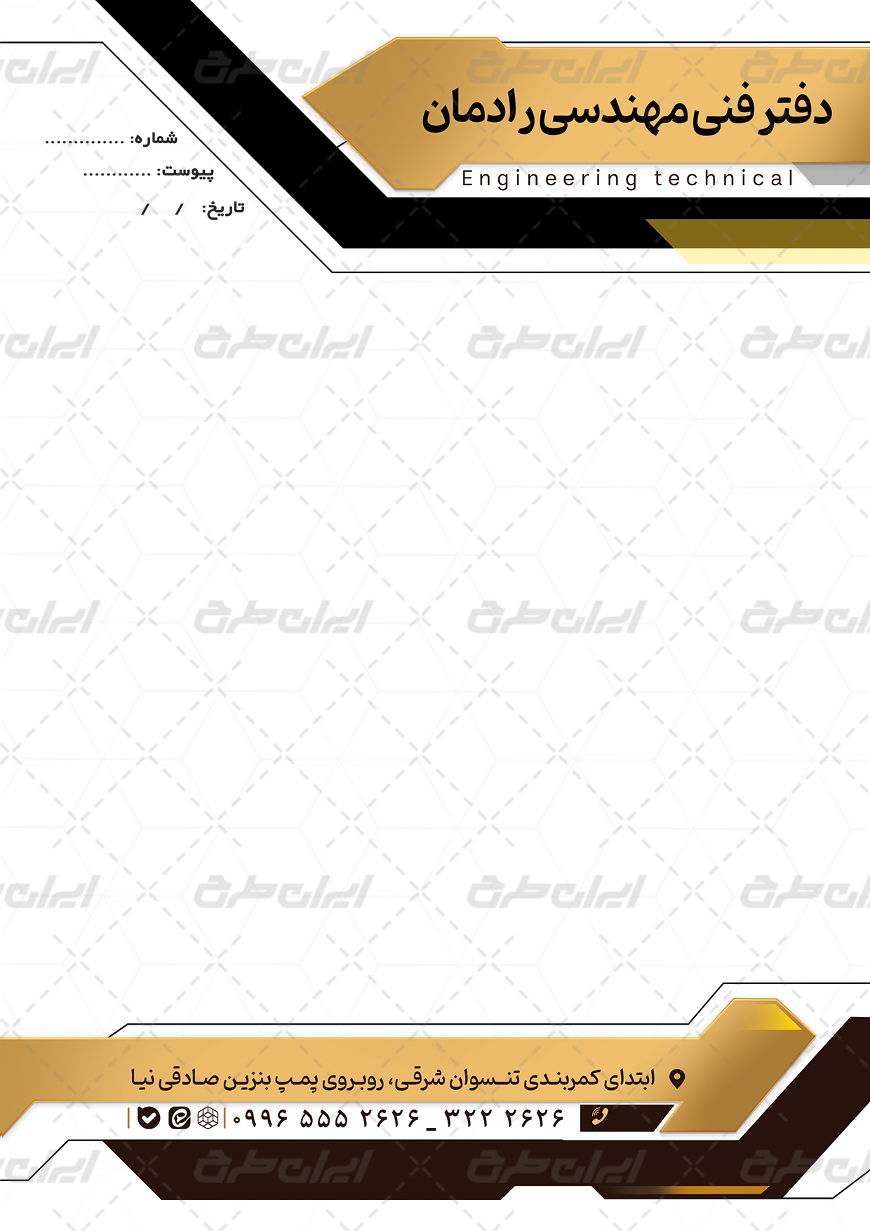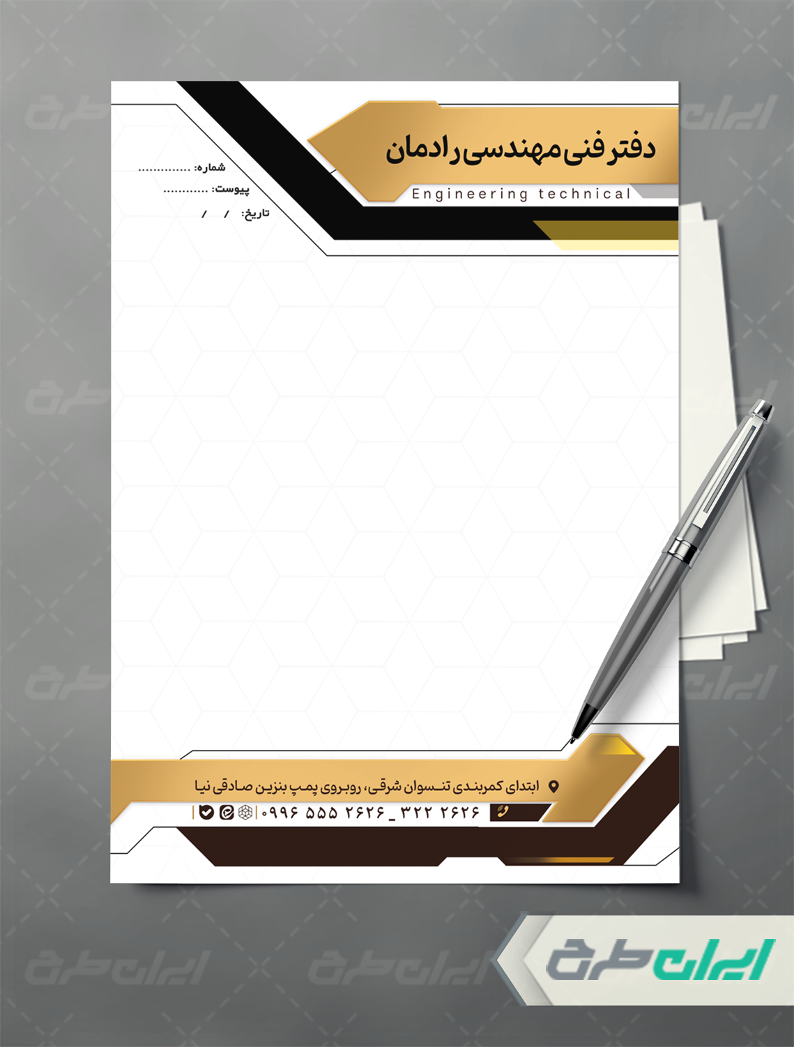 یکی از کاربردهای مهم سربرگهای لایه باز در دفتر فنی مهندسی، ارسال نامهها، پیشنهادات و قراردادهای فنی است. از آنجا که این نوع دفاتر معمولاً با پروژههای بزرگ و حساس سروکار دارند، داشتن یک سربرگ رسمی و حرفهای که شامل اطلاعات دقیق مانند نام شرکت، لوگو، آدرس، شماره تلفن و ایمیل باشد، اهمیت زیادی دارد. این سربرگها در تمام مکاتبات رسمی و تجاری، حتی در ارسال گزارشها و مستندات فنی به مشتریان یا نهادهای دولتی مورد استفاده قرار میگیرند و نمایانگر جدیت و حرفهای بودن شرکت هستند. استفاده از طراحی لایه باز در این سربرگها نیز به دفاتر فنی این امکان را میدهد که مطابق با نیازهای مختلف، طرح خود را بهراحتی ویرایش کرده و آن را شخصیسازی کنند.