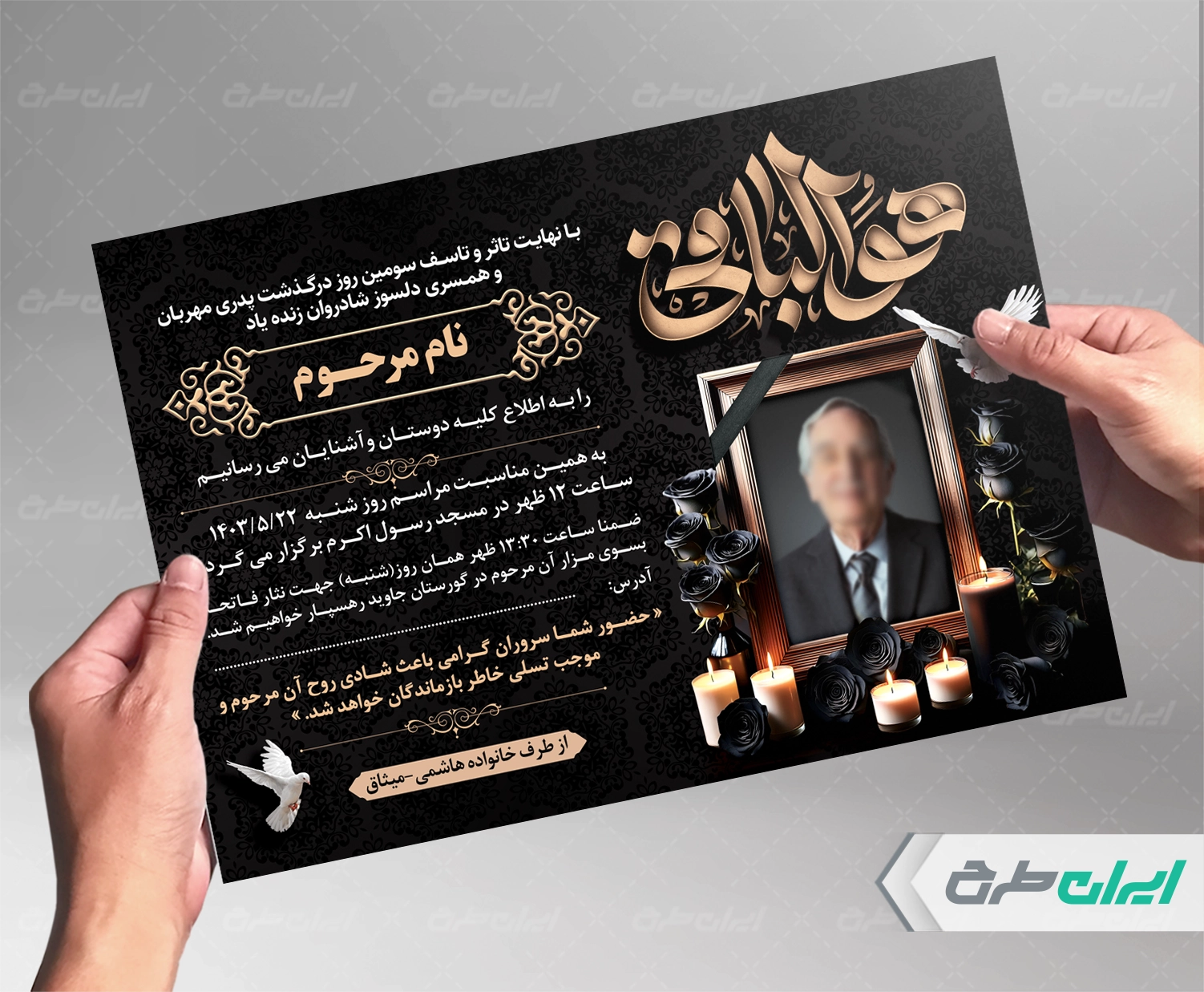 ایران طرح نمونه هایی از طرح اعلامیه ترحیم را جهت استفاده کاربران طراحی کرده است.