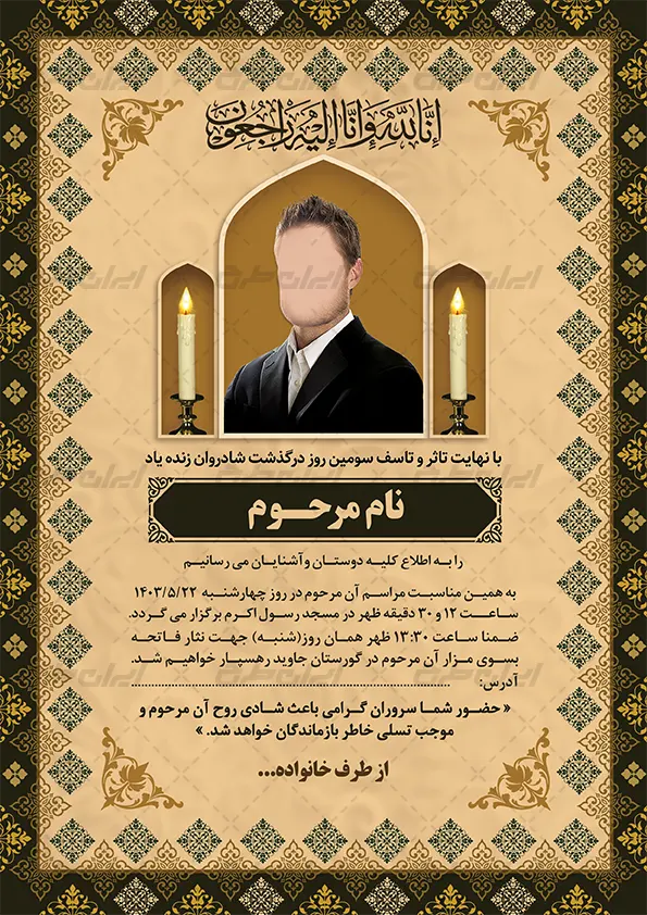 - طراحی اعلامیه ترحیم با استفاده از المنت های مذهبی