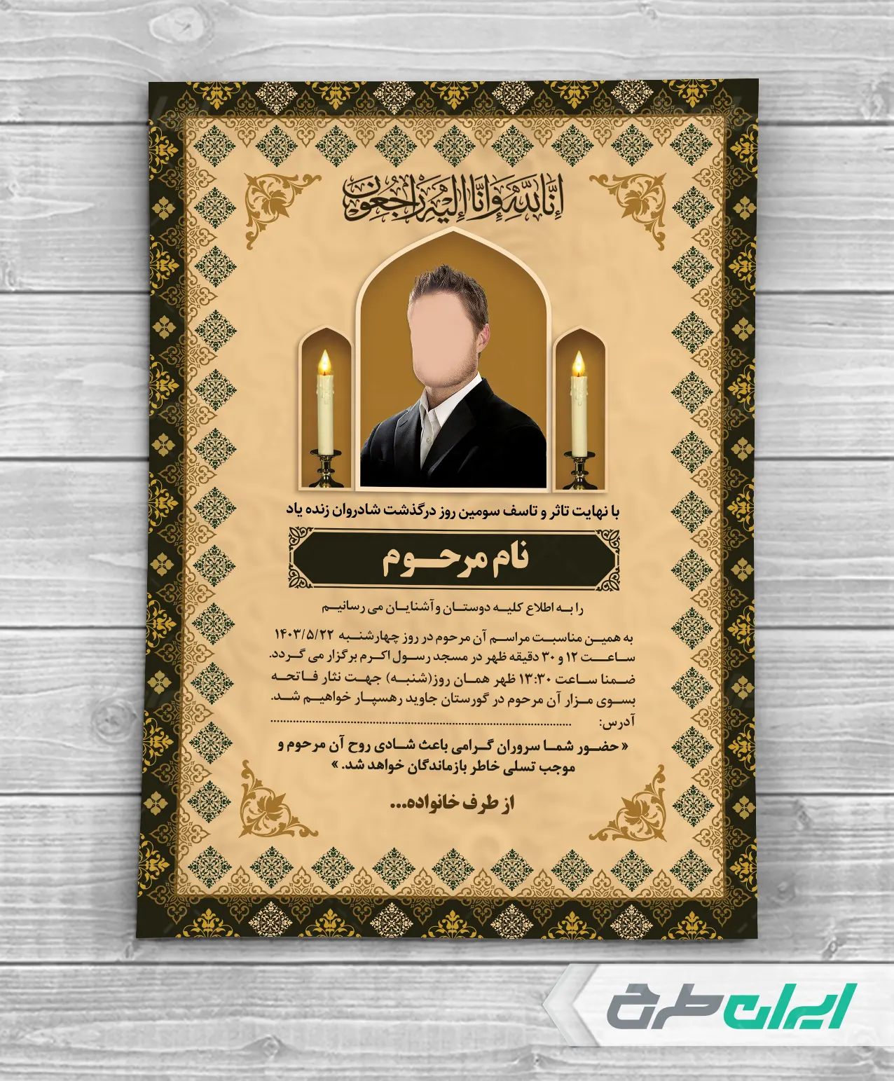طرح اعلامیه ترحیم شامل: