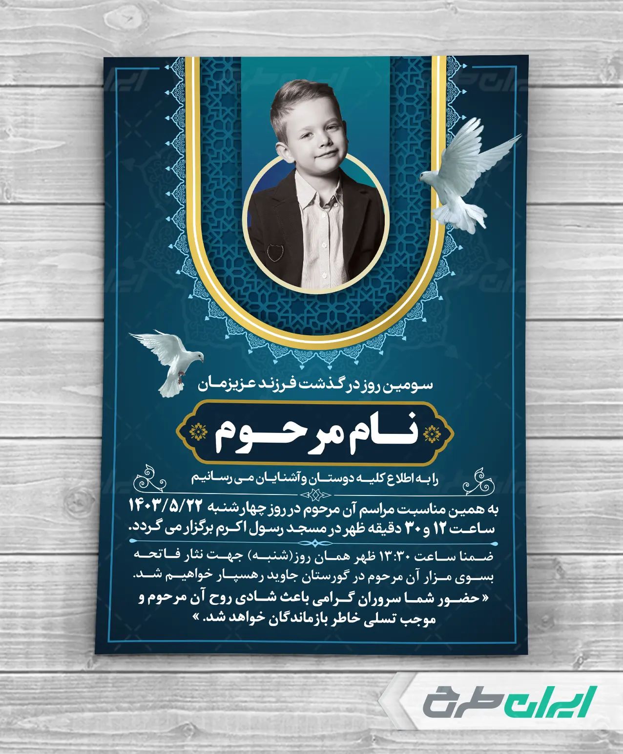 ایران طرح نمونه هایی از طرح اعلامیه ترحیم را جهت استفاده کاربران طراحی کرده است.