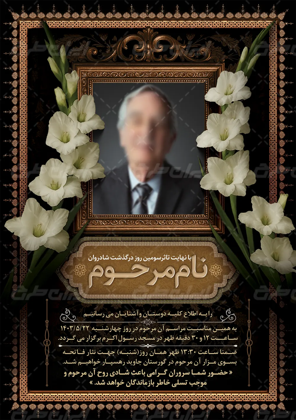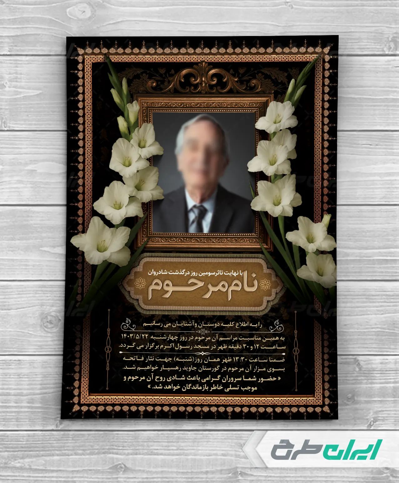 طرح اعلامیه ترحیم شامل: