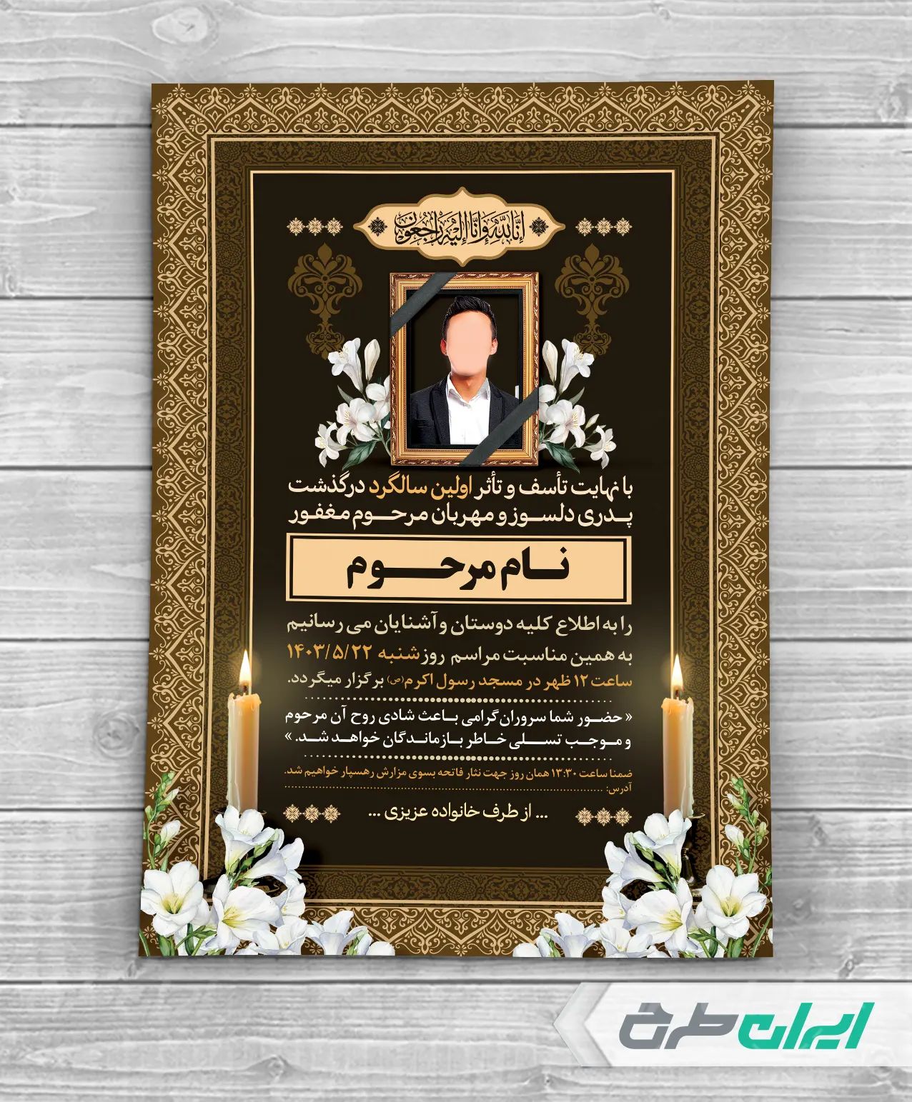 ایران طرح نمونه هایی از طرح اعلامیه ترحیم را جهت استفاده کاربران طراحی کرده است.