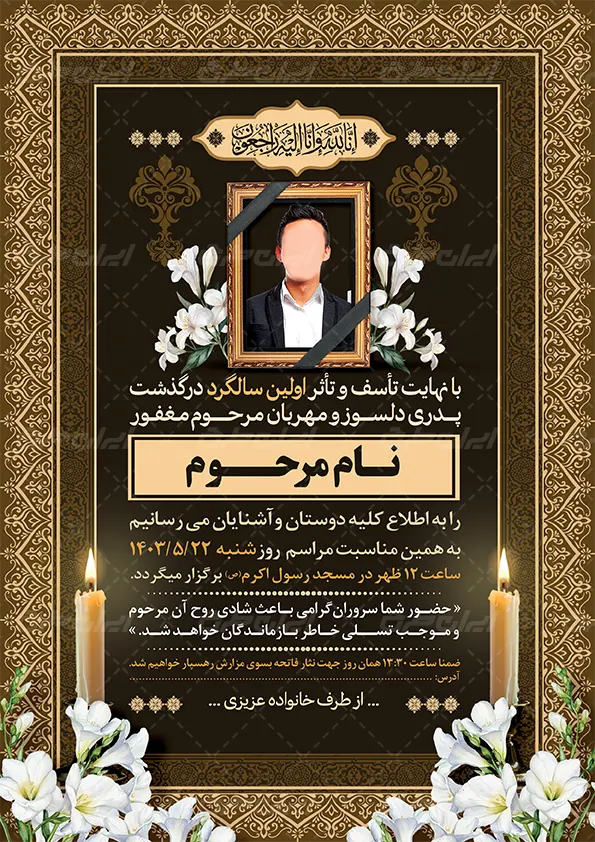 - طراحی اعلامیه ترحیم با استفاده از المنت های مذهبی