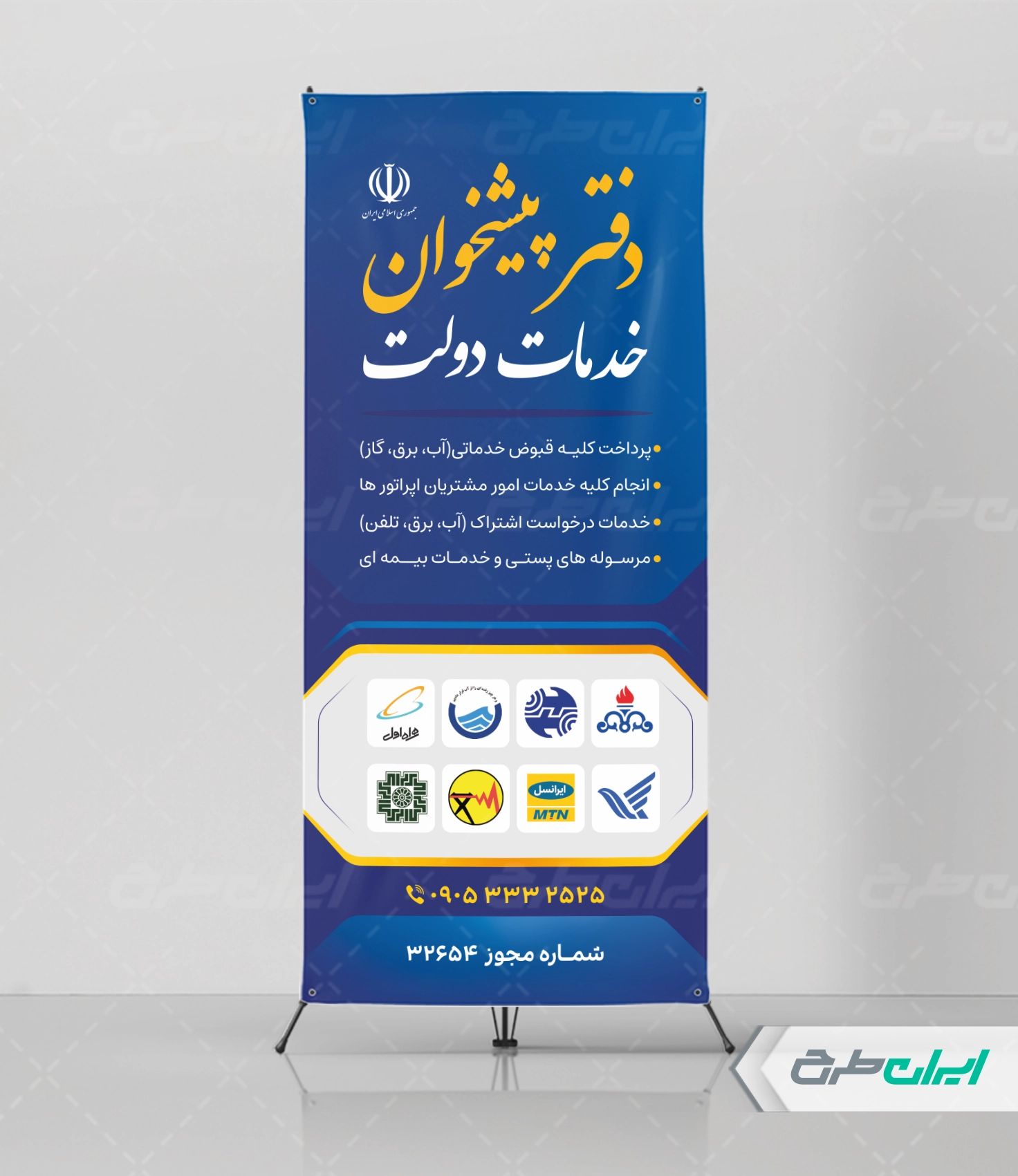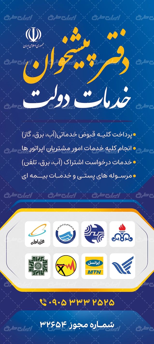 تیم ایران طرح طرح بنر دفتر پیشخوان را برای استفاده روی سردر این دفاتر طراحی نموده است.
