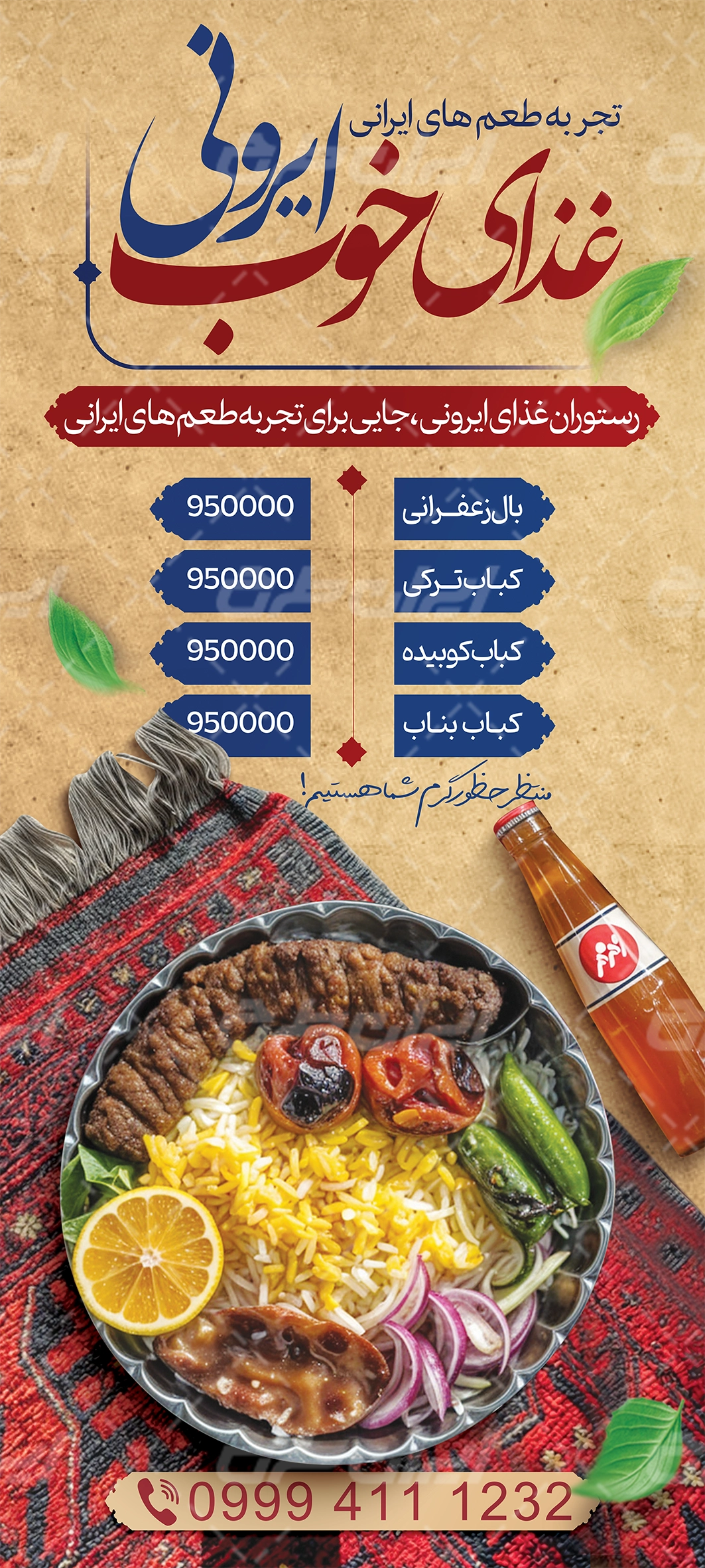 - استفاده از عکس باکیفیت چلو کباب در طرح بنر رستوران می باشد.