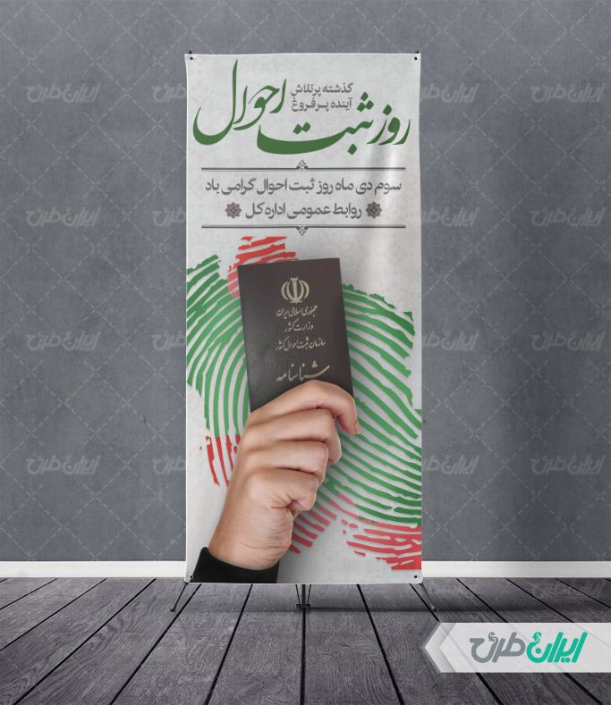 استند روز ملی ثبت احوال، بنر لایه باز روز ملی ثبت احوال، طرح بنر لایه باز روز ملی ثبت احوال، بنر روز ملی ثبت احوال، بر مناسبتی ، وکتور مرتبط با طرح ثبت احوال، متن تبریک روز ملی ثبت احوال