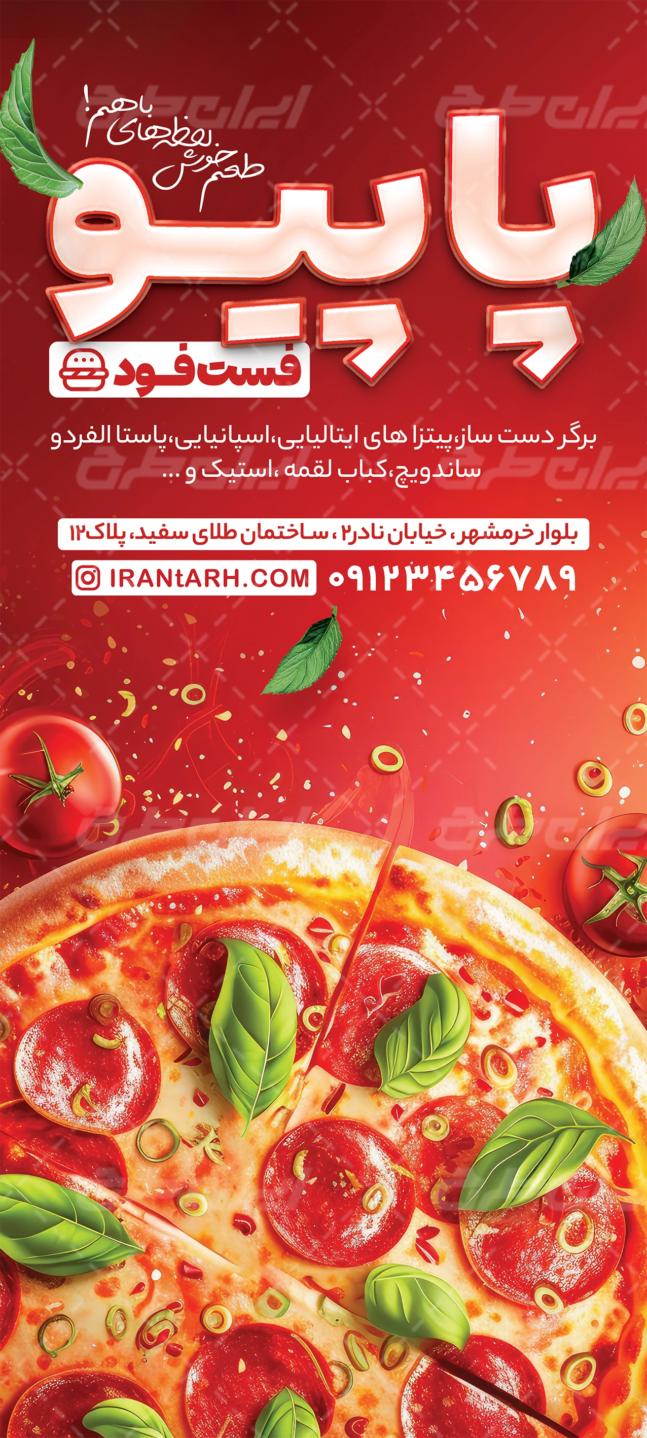 مشخصات فنی طرح لایه باز بنر فست فودی و پیتزا فروشی