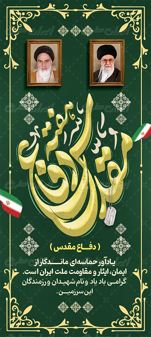 بنر لایه باز هفته دفاع مقدس، توسط تیم حرفه ای ایران طرح جهت استفاده کاربران سایت طراحی و به صورت لایه باز در دسترس کاربران قرار گرفته است.