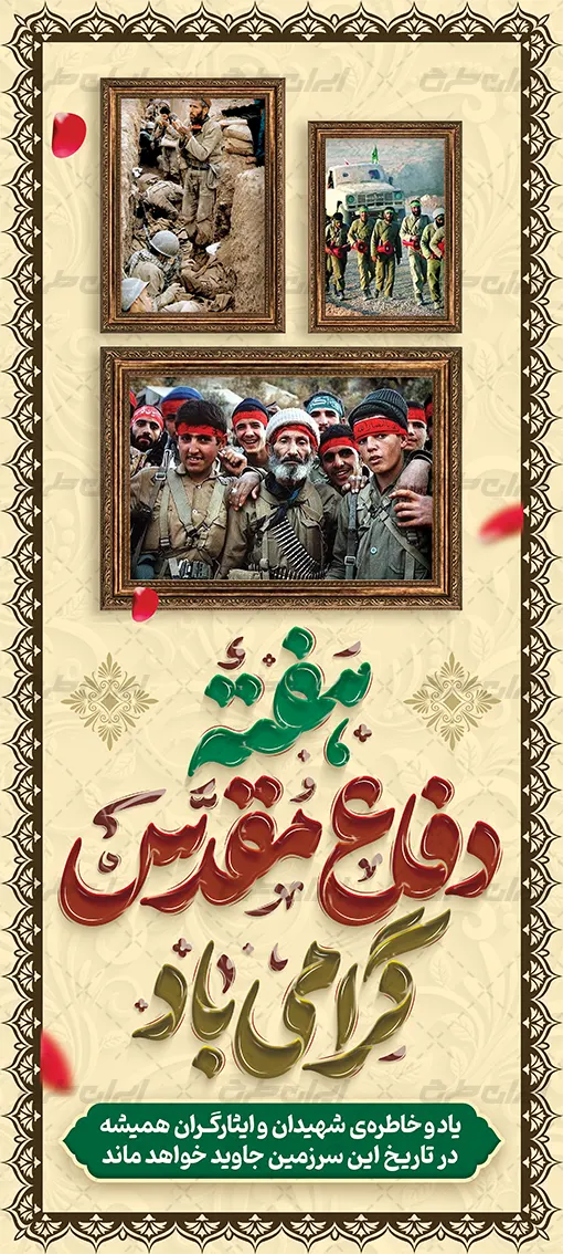 بنر لایه باز هفته دفاع مقدس، توسط تیم حرفه ای ایران طرح جهت استفاده کاربران سایت طراحی و به صورت لایه باز در دسترس کاربران قرار گرفته است.
