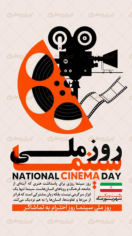 متن مرتبط روز سینما می باشد که توسط طراحان ایران طرح در نرم افزار فتوشاپ طراحی شده است.