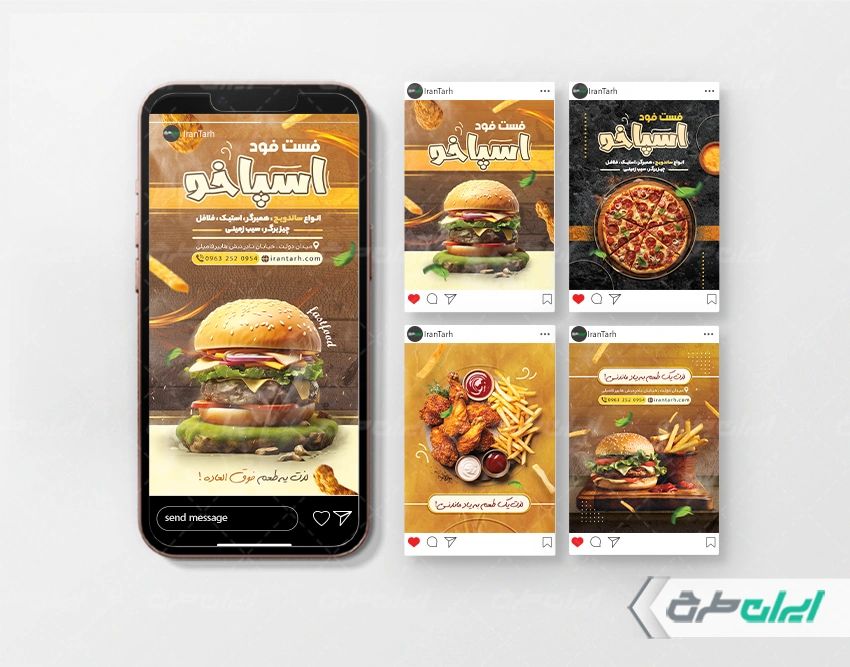 طرح پست و استوری اینستاگرام فست فود شامل :