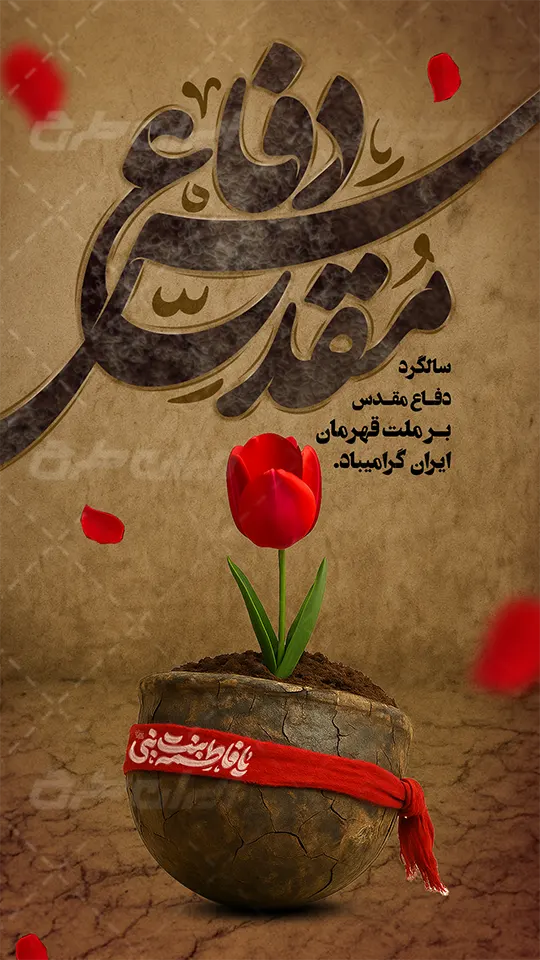 تایپوگرافی و متن مرتبط با هفته دفاع مقدس می باشد که توسط طراحان ایران طرح در نرم افزار فتوشاپ طراحی شده است.