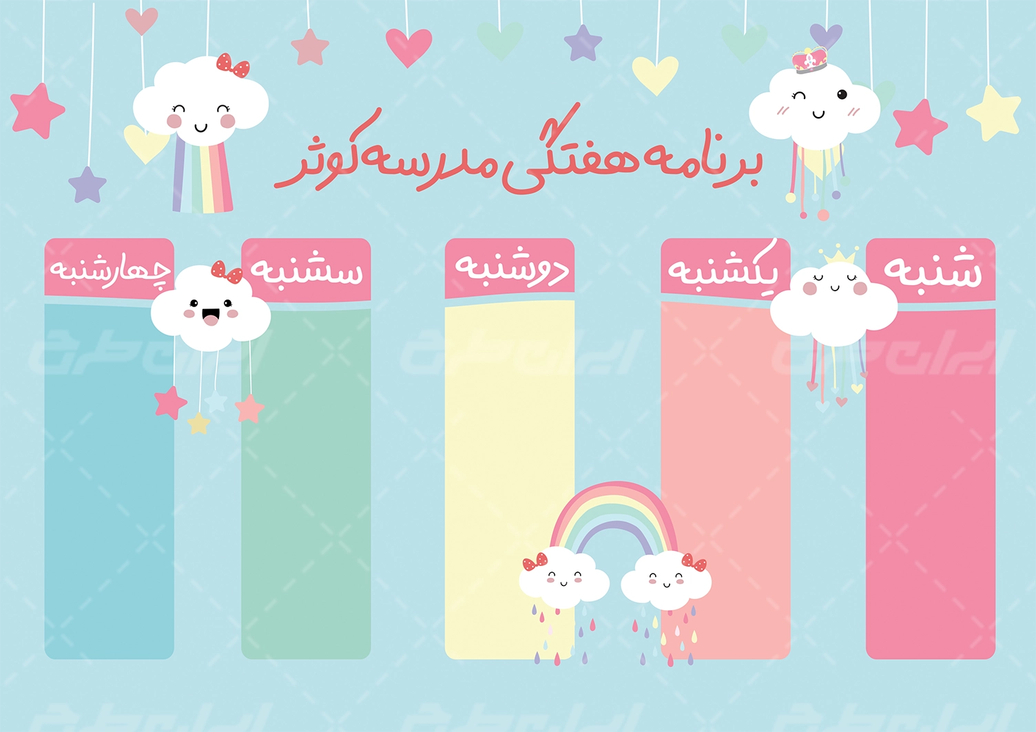 - طراحی ساده و فانتزی برنامه هفتگی با استفاده از وکتور های فانتزی و باکیفیت