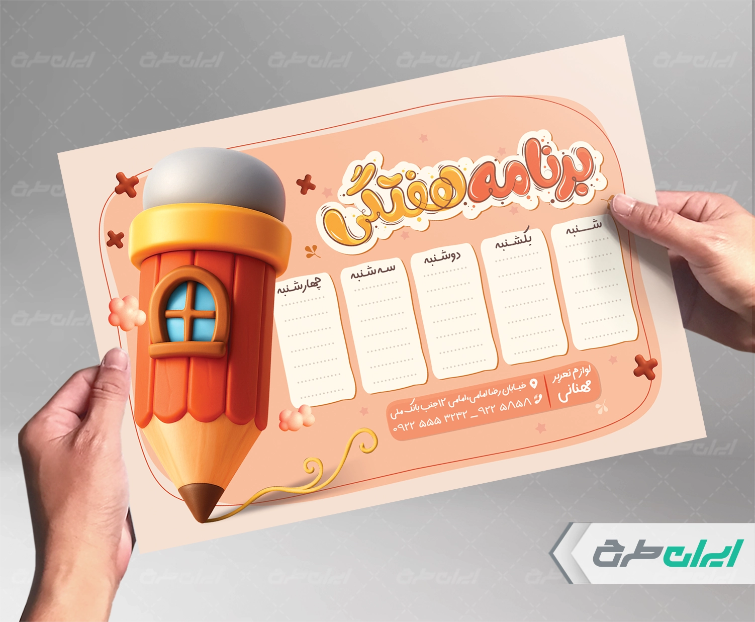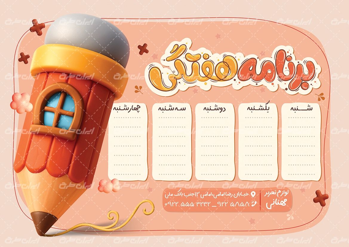 طرح برنامه هفتگی، توسط طراحان مجرب ایران طرح طراحی و در اختیار کاربران سایت قرار گرفته است.