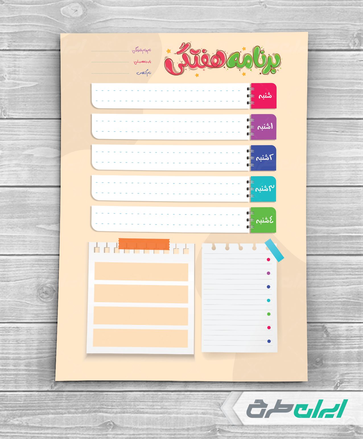 طرح برنامه هفتگی، توسط طراحان مجرب ایران طرح طراحی و در اختیار کاربران سایت قرار گرفته است.