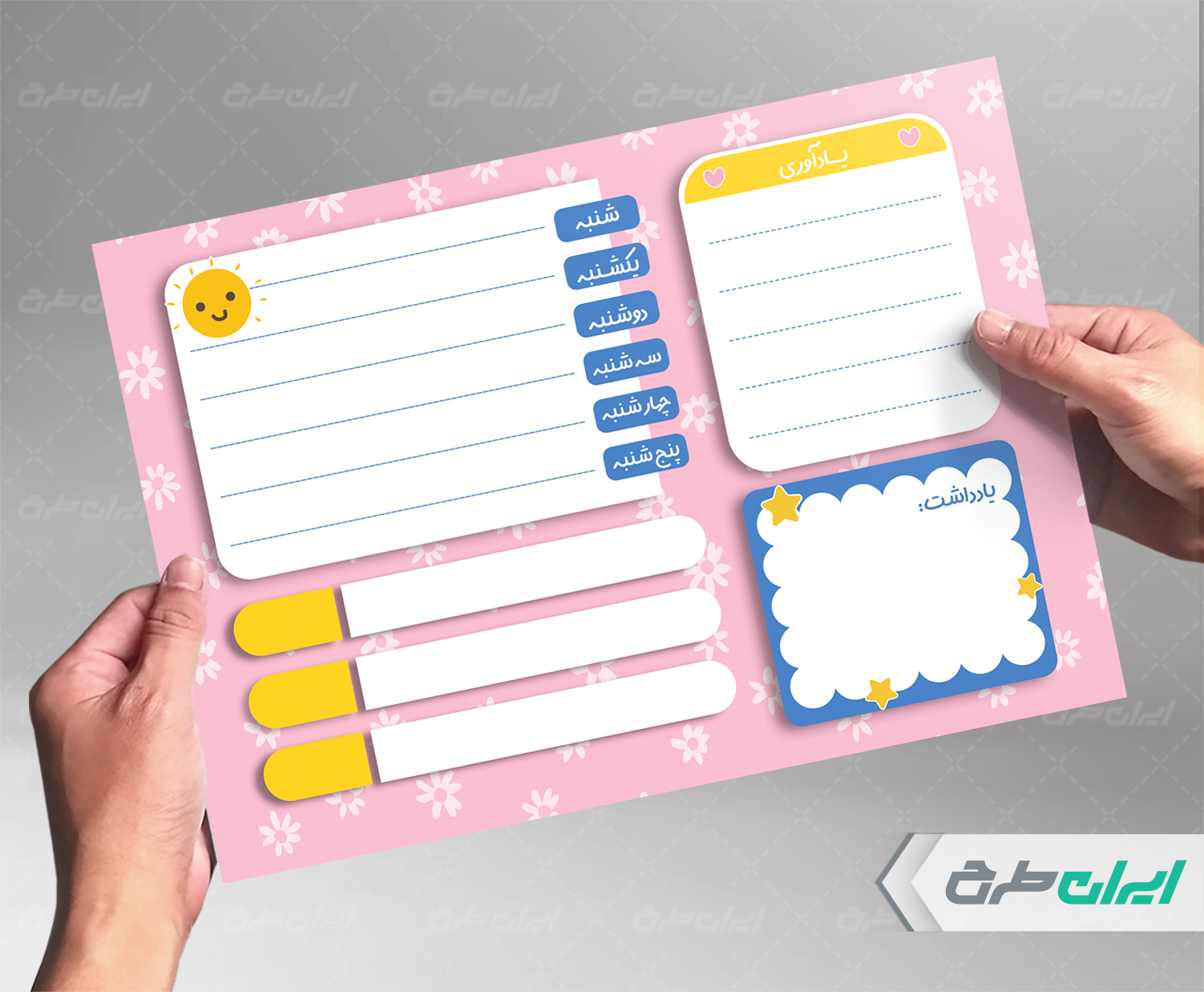طرح برنامه هفتگی، توسط طراحان مجرب ایران طرح طراحی و در اختیار کاربران سایت قرار گرفته است.