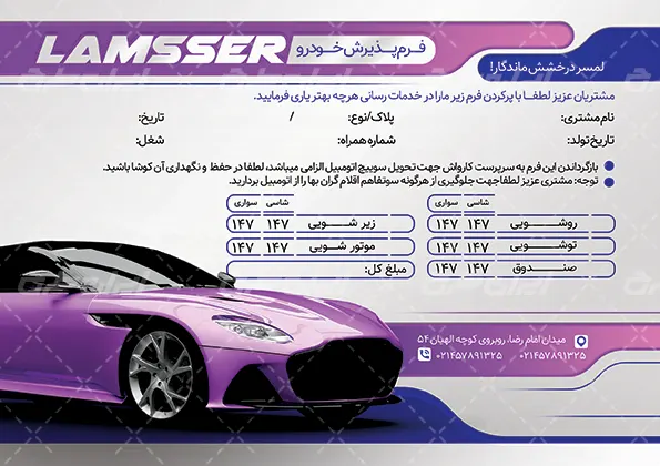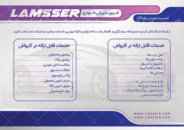 - استفاده مناسب از عکس باکیفیت ماشین که مناسب طرح برگه قبض کارواش میباشد.