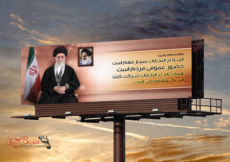 توضیحات : طرح بنر لایه باز انتخابات مجلس شورا اسلامی بک گراند قهوه ای و نارنجی با عکس مقام معظم رهبری دوربری شده و قاب عکس امام خمینی (ره) ( بنر انتخابات ,پرچم ایران ,امام خامنه ای ( مدظله العالی ) ,بک گراند قهوه ای )