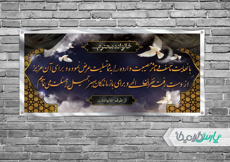 طرح بنر تسلیت، توسط تیم حرفه ای پارس گرافیک جهت استفاده کاربران سایت طراحی و به صورت لایه باز در دسترس کاربران قرار گرفته است.