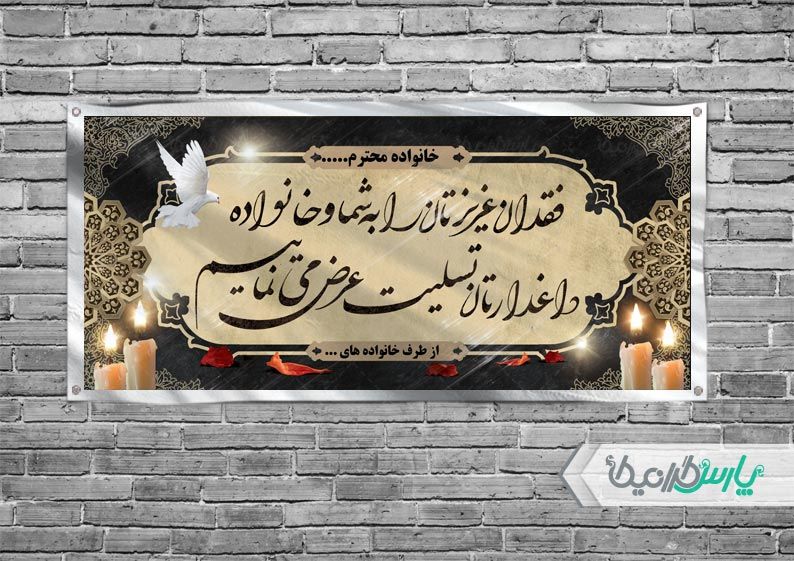 طرح بنر لایه باز تسلیت، توسط تیم حرفه ای پارس گرافیک جهت استفاده کاربران سایت طراحی و به صورت لایه باز در دسترس کاربران قرار گرفته است.