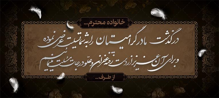 در این طرح، قالبی برای نوشتن متن تسلیت نیز در نظر گرفته شده است. با استفاده از فونتهای مناسب و تنظیمات حرفهای، متن تسلیت به زیبایی بیشتری دست خواهد یافت.