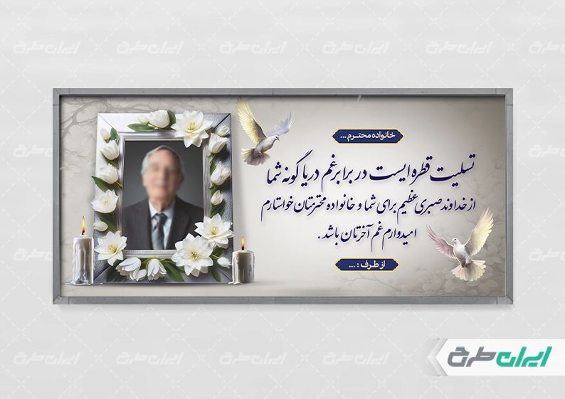 طرح بنر تسلیت ، توسط تیم حرفه ای ایران طرح جهت استفاده کاربران سایت طراحی و به صورت لایه باز در دسترس کاربران قرار گرفته است.