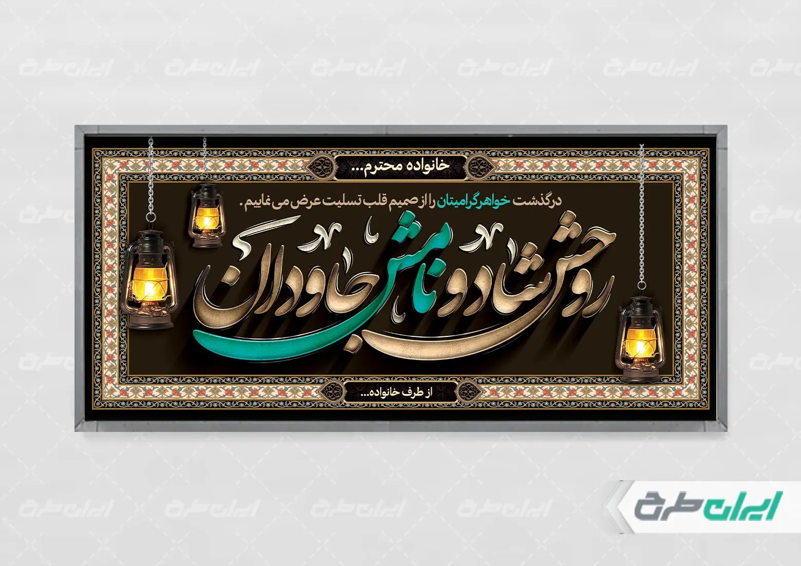 بنر تسلیت لایه باز , بنر ترحیم , ترحیم , متن ترحیم , طرح بنر تسلیت , دانلود بنر تسلیت , بنر تسلیت , طرح , طرح لایه باز بنر تسلیت , تذهیب , طرح بنر تسلیت , متن بنر تسلیت , بنر لایه باز تسلیت , طرح بنر ترحیم , متن تسلیت , تسلیت , تایپوگرافی روحش شاد و نامش جاویدان ,