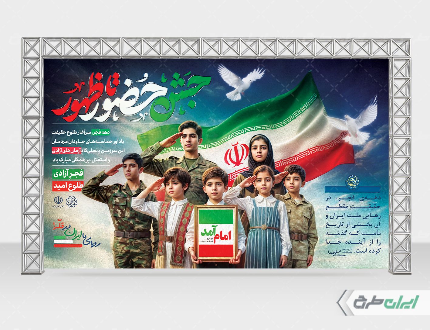 بنر دهه فجر، توسط تیم حرفه ای ایران طرح جهت استفاده کاربران سایت طراحی و به صورت لایه باز در دسترس کاربران قرار گرفته است.