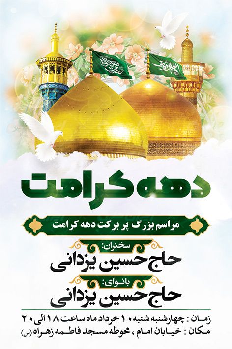 بنر دهه کرامت، توسط تیم حرفه ای ایران طرح جهت استفاده کاربران سایت طراحی و به صورت لایه باز در دسترس کاربران قرار گرفته است.
