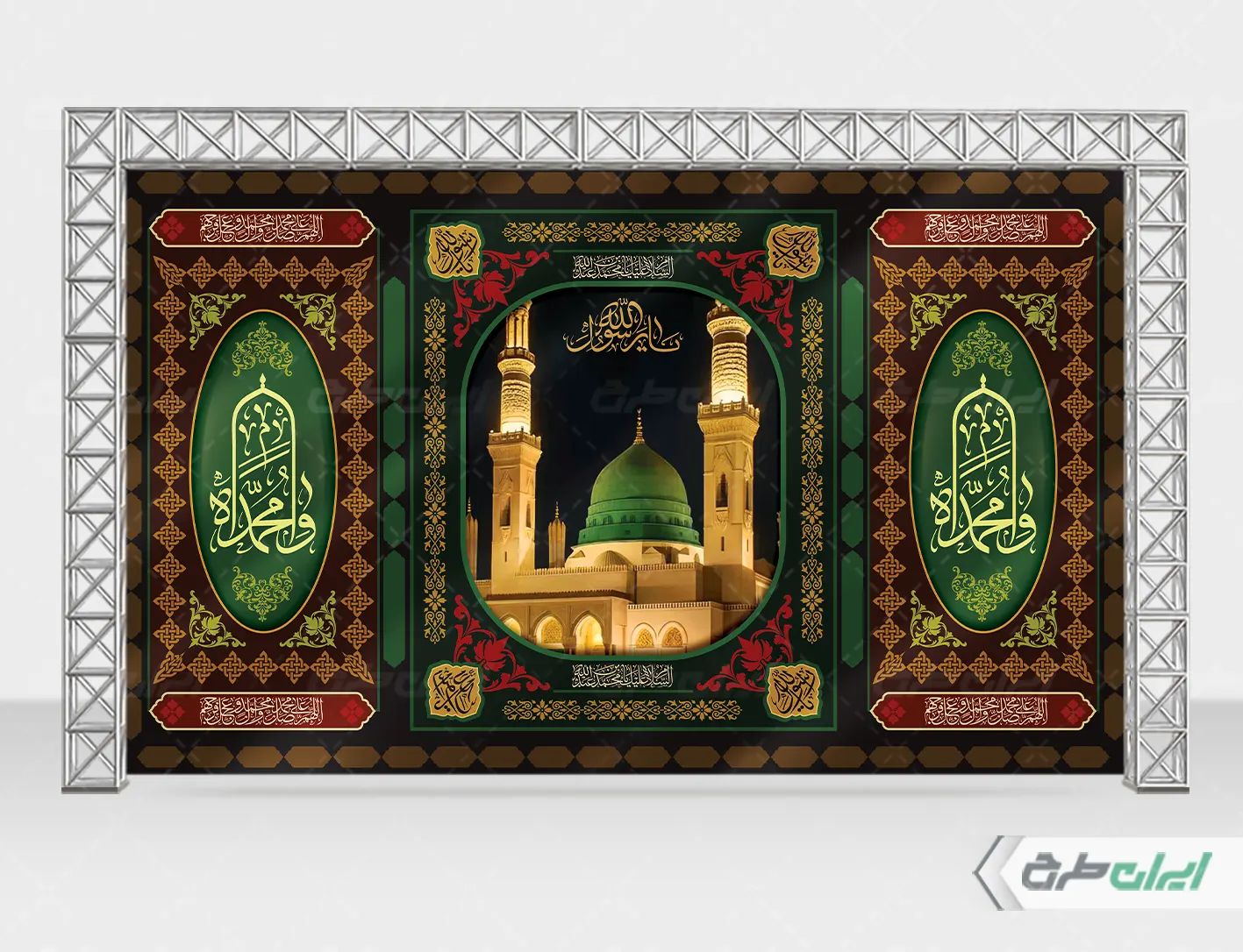 ضمنا به دلیل لایه باز بود طرح بنر تبریک رحلت پیامبر اکرم می توانید با استفاده از نرم افزار فتوشاپ طرح را ویرایش نمایید.