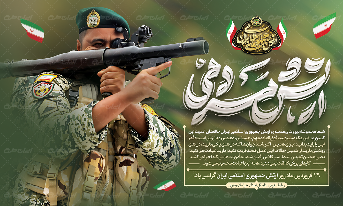 پرچم ایران , روز ارتش جمهوری اسلامی , طرح روز ارتش جمهوری اسلامی , لوگو ارتش , تایپوگرافی ارتش مردمی , طرح لایه باز روز ارتش , بنر 29 فروردین , بنر لایه باز روز ارتش , نقشه ایران , روز ارتش , بنر روز ارتش ,