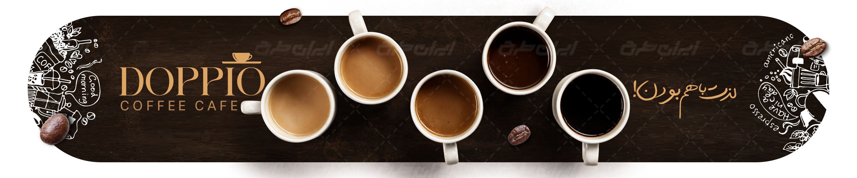- طراحی بنر سایت، با استفاده از لیبل ها و شیپ های مناسب شغل کافه قهوه