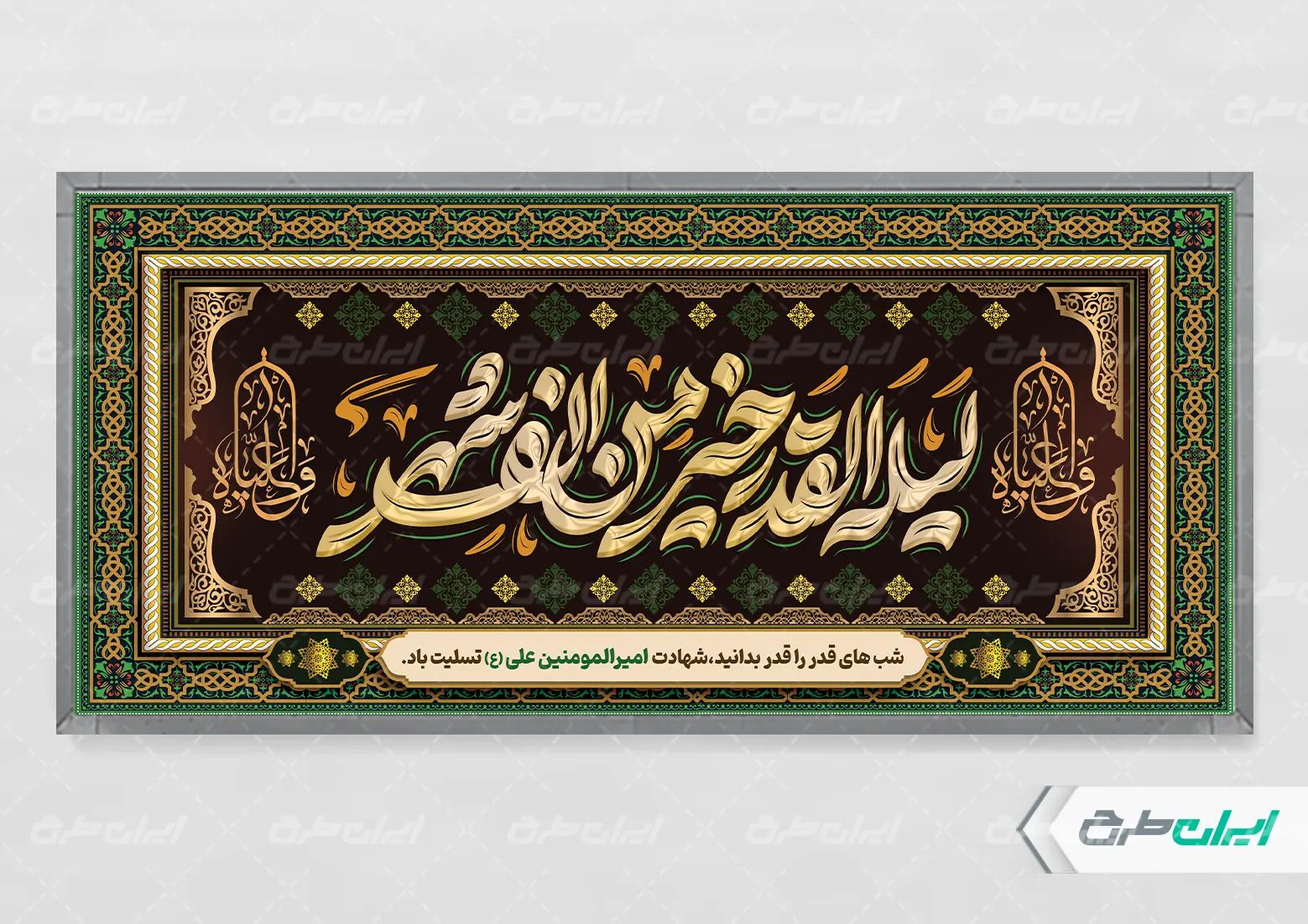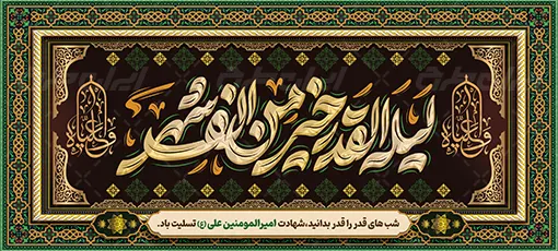- طراحی بنر با استفاده از تایپوگرافی لیله القدر خیر من الف شهر در طرح بنر شب قدر
