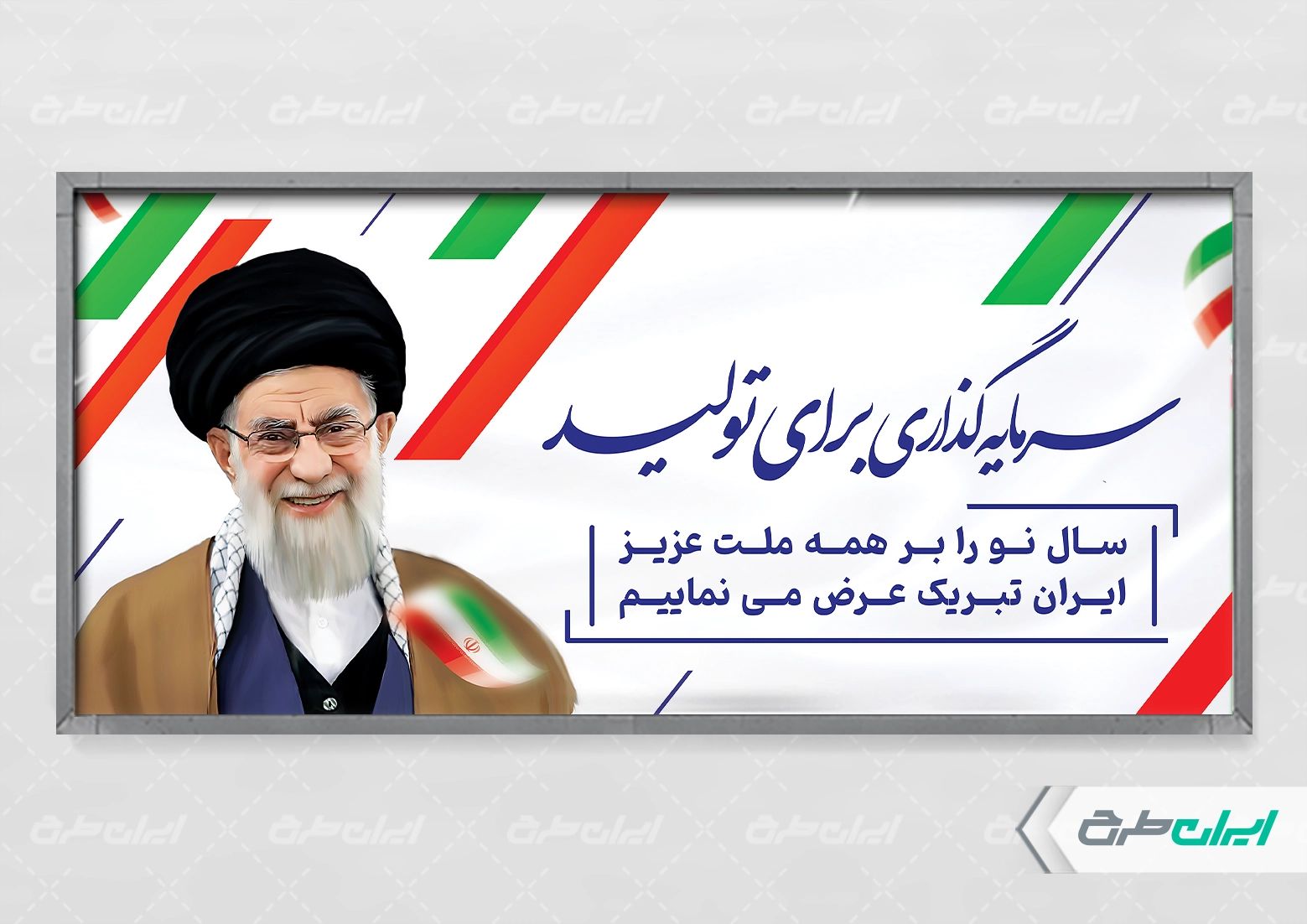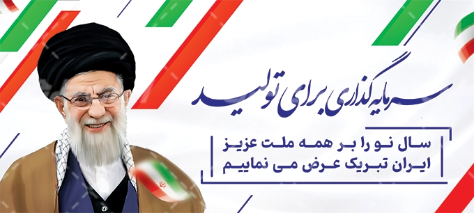 تصویر رهبری و متن شعار سال سرمایه گذاری برای تولید، که توسط تیم ایران طرح طراحی شده است.