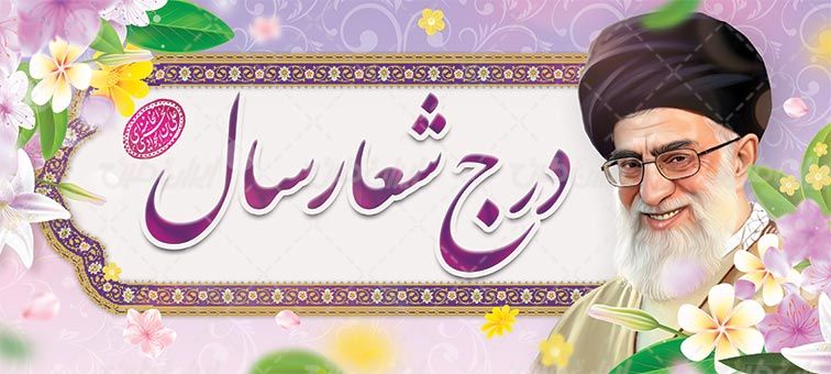 - طراحی بنر با استفاده از تصویر نقاشی دیجیتال ایت الله خامنه ای در طرح بنر شعار سال