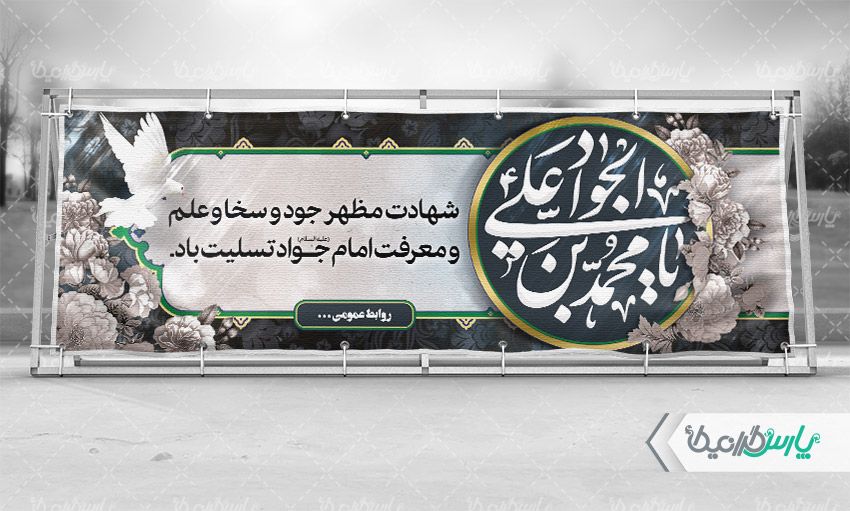 بنر شهادت امام جواد (ع)، توسط تیم حرفه ای پارس گرافیک جهت استفاده کاربران سایت طراحی و به صورت لایه باز در دسترس کاربران قرار گرفته است.