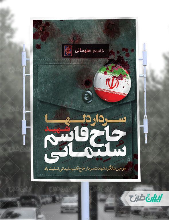 طرح بنر سالگرد شهادت سردار حاج قاسم سلیمانی شامل: تصویر پرچم ایران ، حاج قاسم سلیمانی، سردار سلیمانی و متن تسلیت سالگرد شهادت حاج قاسم سلیمانی می باشد که توسط تیم پارس گرافیک طراحی شده است. به دلیل استفاده از عناصر و المان های با کیفیت در طرح بنر مناسبتی ، می توانید علاوه بر چاپ بنر (به صورت عمودی)، در استوری اینستاگرام و یا دیگر پلت فرم های فضای مجازی استفاده نمایید. ضمنا به دلیل لایه باز بود طرح بنر سالگرد شهادت سردار حاج قاسم سلیمانی می توانید با استفاده از نرم افزار فتوشاپ تغییرات دلخواه خود را اعمال کنید.