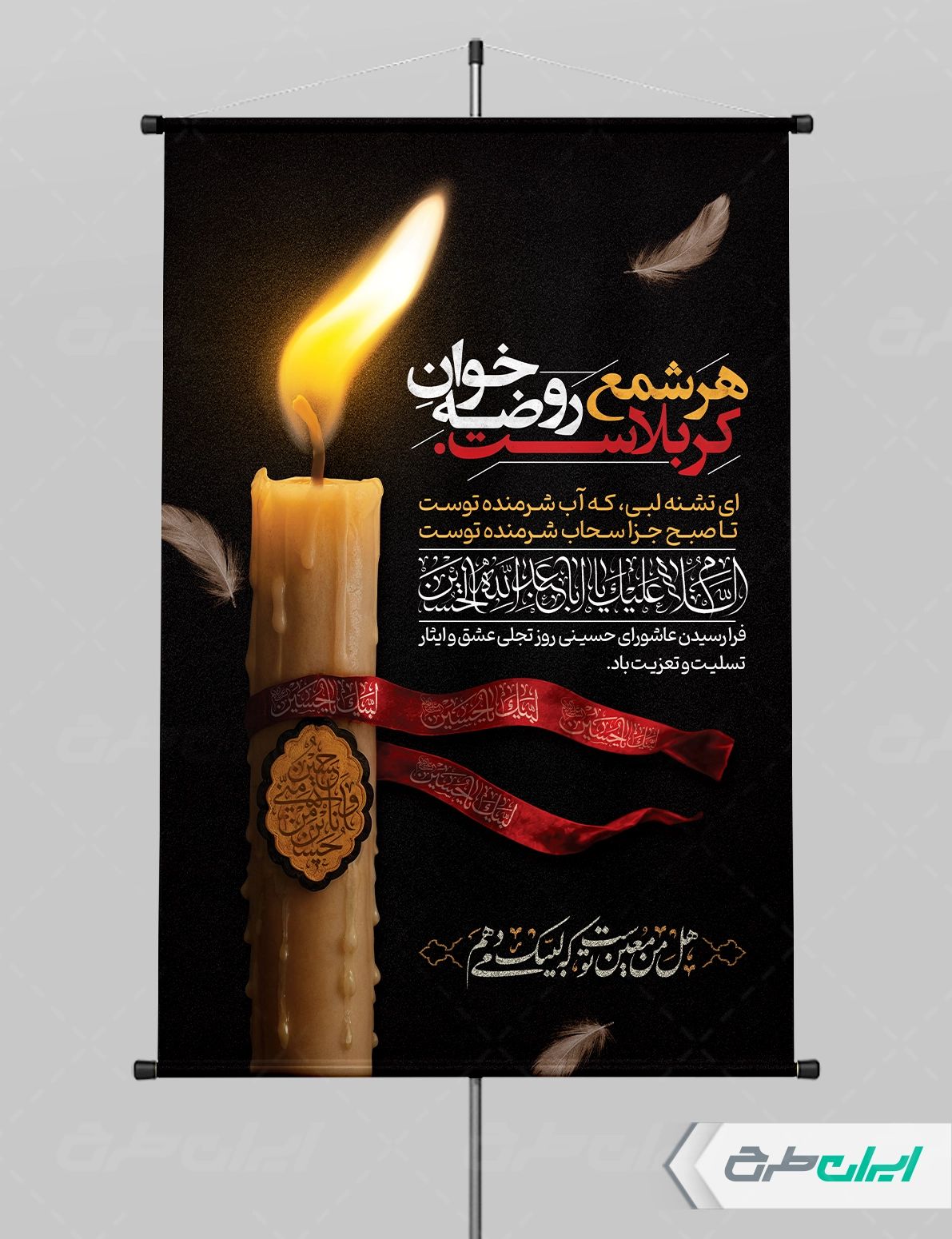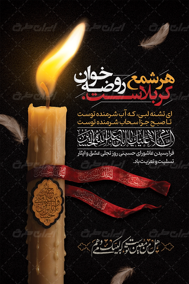 تصویر شمع و متن تسلیت تاسوعا و عاشورای حسینی می باشد که توسط طراحان ایران طرح در نرم افزار فتوشاپ طراحی شده است.
