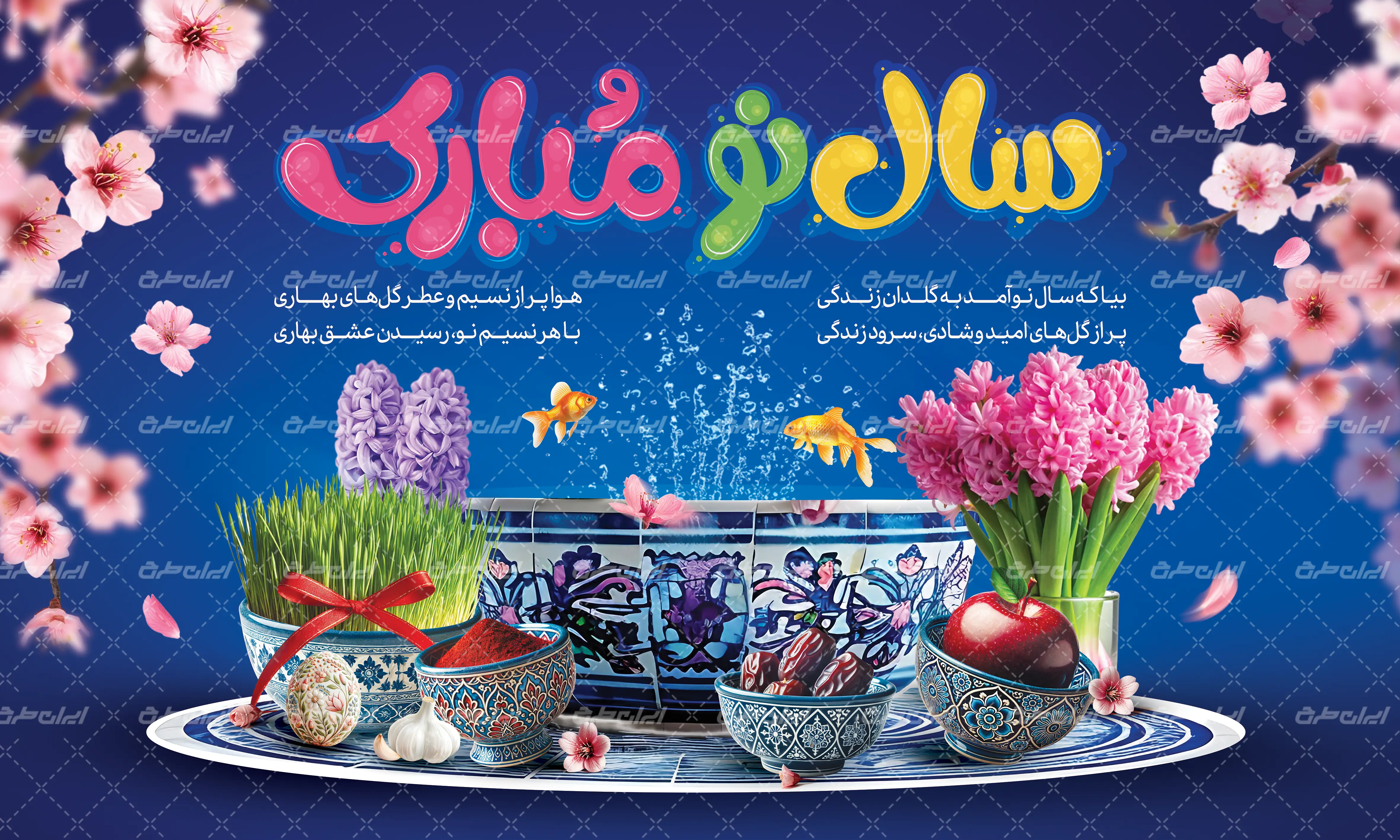 تصویر هفت سین، تایپوگرافی سال نو مبارک و متن گرامیداشت ماه رمضان می باشد که توسط تیم ایران طرح طراحی شده است.