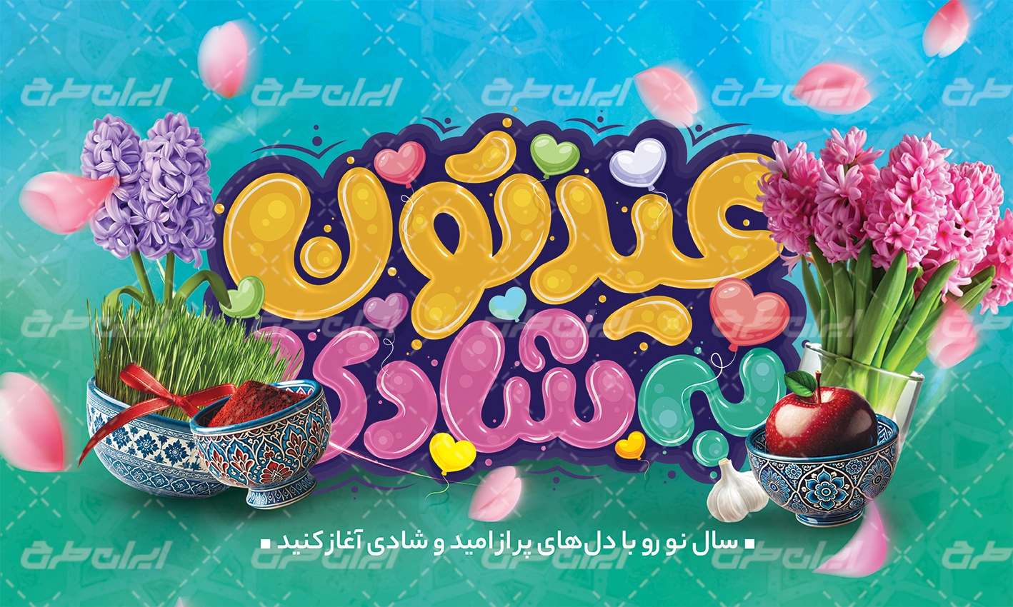 - طراحی بنر با استفاده از عناصر با کیفیت و تایپوگرافی عیدتون به شادی