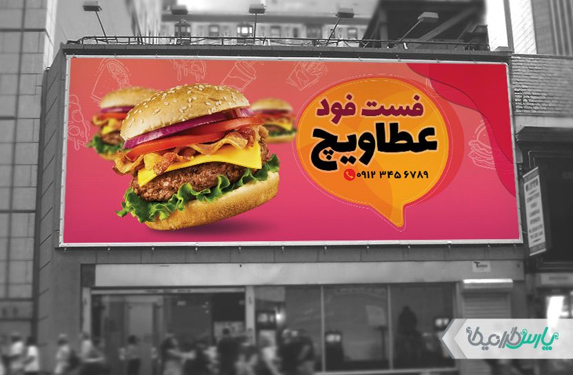 طرح بنر فست فود شامل: تصویر همبرگر ، لیبل و شیپ های کاربردی می باشد که توسط طراحان پارس گرافیک در نرم افزار فتوشاپ طراحی شده است. به دلیل لایه باز بودن (قابل ویرایش توسط کاربران در نرم افزار فتوشاپ Adobe Photoshop) بودن و کیفیت بالای عناصر و المان های استفاده شده در طرح بنر مشاغل، می توانید از این طرح علاوه بر چاپ روی بنر(به صورت افقی)، از سایر موارد تبلیغاتی از جمله نصب روی بیلبورد، استوری اینستاگرام و دیگر پلت فرم های فضای مجازی بهره ببرید.